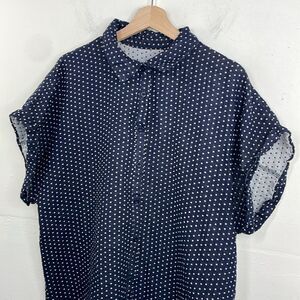 Dot Print Casual Top Batwing Sleeve Front Button Closure Cotton Blend size 2X