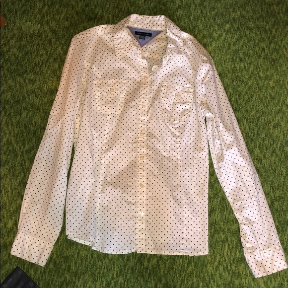 White and navy Dot printed button down