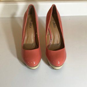 Dots brand coral/pink pumps with twine platform. Size 9. Very good condition.