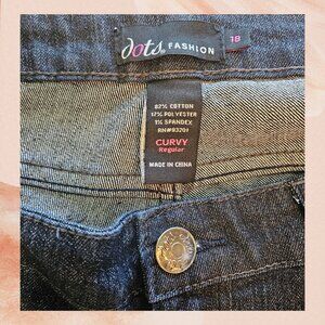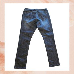 Pre-Loved. Curvy regular, dark wash, stretchy, skinny ankle jeans. Complete with button zip-fly closure and 5-pocket styling.