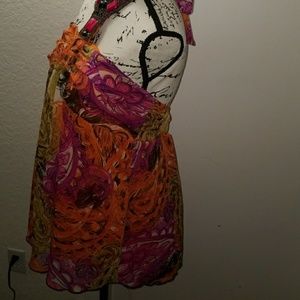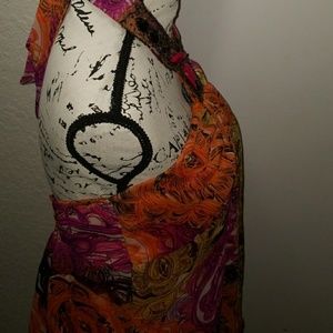 Dots Jeweled Neckline Chiffon Halter Tie Top