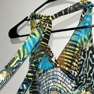 Dots Leopard and Tropical Print Tie Neck Sleeveless Textured Maxi Dress