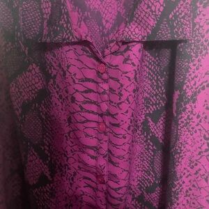 Chic dress with a magenta and black pattern. Ideal for any occasion.