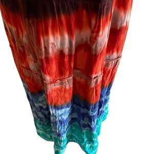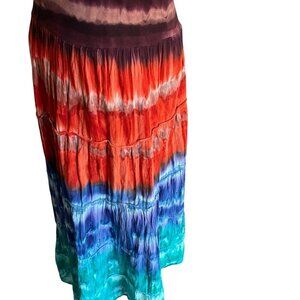 Dots Ombre Tie Dye Maxi Sundress Size S Vintage Beach Hippie India Tiered Dress
