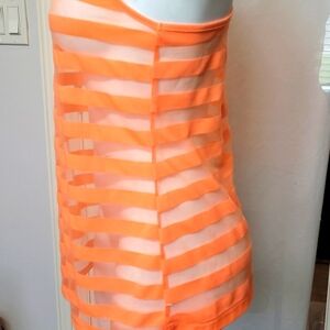 Dots Size S Orange Sheer Striped Tank Top. Bust is 16 inches across.