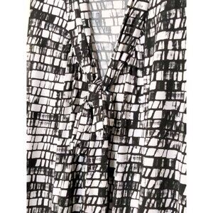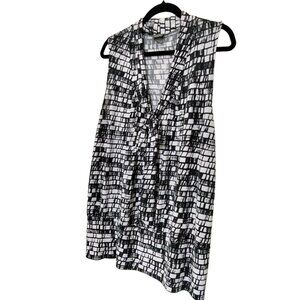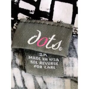 This Dots sleeveless top in size 2X features a captivating black and white patterned design that combines style with comfort. Its charming tie-neck detail enhances the sophisticated look, while the banded hem offers a flattering fit. Ideal for layering or wearing alone, it’s a versatile wardrobe addition.