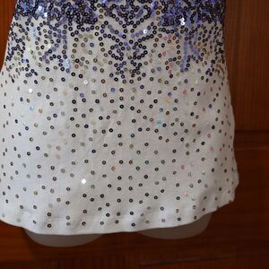 This stylish tank top from Dots features a captivating sequin design that transitions from blue to white, creating a stunning ombré effect. The sleeveless cut and rounded neckline add to its chic appeal, making it perfect for a dressy casual look.