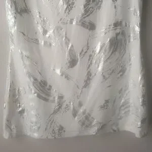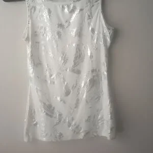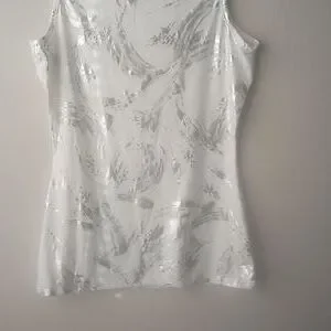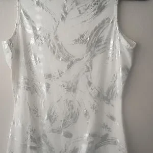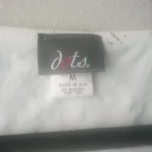 Excellent pre-owned condition. No flaws. No stains. No holes. No tears. Hand wash in cold water. 92% polyester, 8% spandex.