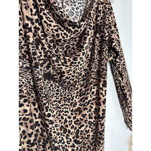 Dots Slit Sleeve Leopard Print Rhinestone Drape Mini Dress in Brown/Black - Sz L