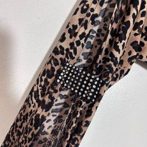 Leopard Print with Rhinestone Shoulder and Slit Sleeve Straps