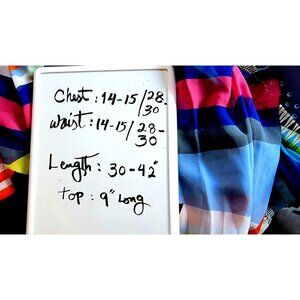 Please read all measurements carefully. this is a very small tight shaped dress and has to be almost a perfect size to fit body well. Material - 100% Polyester