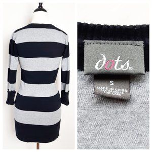 Dots Striped Tuinc Sweater Gray and Black Wide Stripe V Neck Cuffed Crop Sleeve
