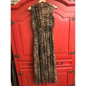 Dots Sz Small Sexy Zebra Striped Dress Lace up Front Faux Leather Midi Sheer EUC
