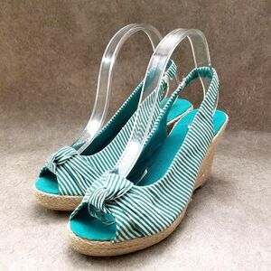 Dots Womens Joon 2 Sz 9 M Green Stripes Peep Toe Slingback 3.5" Heels Wedge