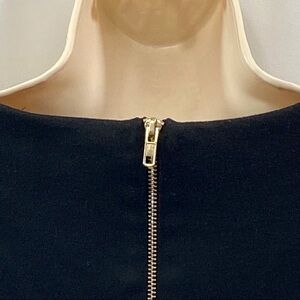Dots Women’s Midi Knit Sheath Dress L Black Tan Scoop Open Neck Zipper 3/4 Sleeves