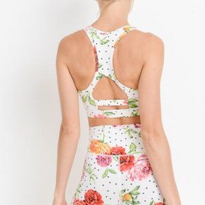 This sports bra features a racerback design with cut-out accents so you can keep your cool during the most rigorous workouts.