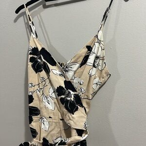 Dotti Black & Beige Floral Jumpsuit adjustable straps and zipper closure