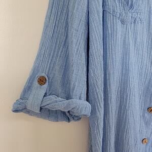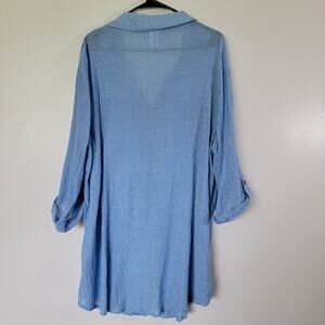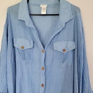 Dotti Gauzy Blue Button Tunic Womens 2X Lightweight Coastal Whimsy 100% Cotton