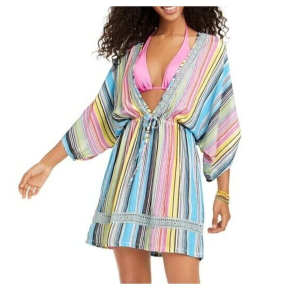 Dotti Havana Coast Striped Tunic Swim Cover-Up Multicolor Size Medium $58