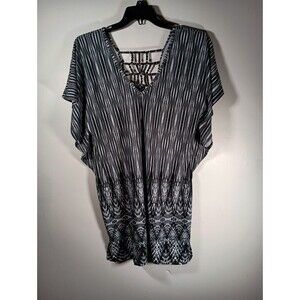 Dotti Strappy Print Swim Coverup Dolman Short Sleeve V Neck Top Beach Size XL