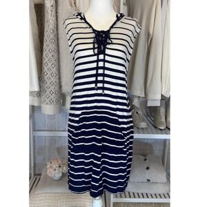 Dotti Women's Size M Navy Striped Nautical Hooded Swimsuit Cover Sundress #0157