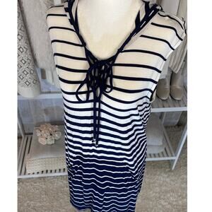 Dotti Women's Size M Navy Striped Nautical Hooded Swimsuit Cover Sundress