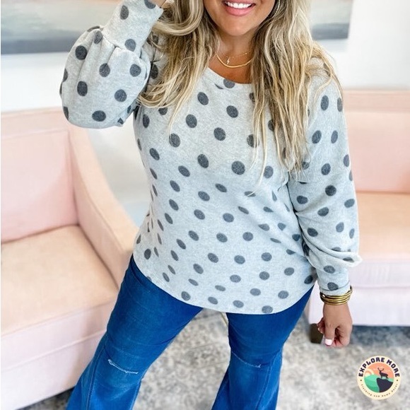 Stylish and comfortable gray polka dot top for women. Perfect for casual outings.