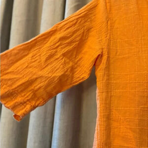“Dotty Cotton Gauze Ezze Wear Outdoors” Size S/P, Light Orange Button Down Tunic