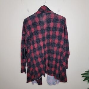 Dotty | Womens Red Black Plaid Cascade Tiered Open Front Cardigan Small