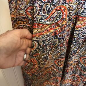 [FEATURES]: shorts sleeve , crewneck, orange and blue multi paisley print, pockets, pleated swing, summer , casual, knee length, party, casual, stretch