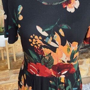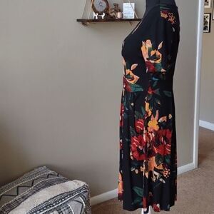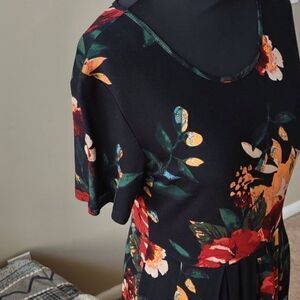 DouBCQ Women's Floral Print Casual Flowy Pleated Loose Dress with Pockets Sz L