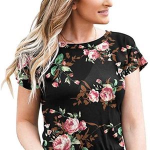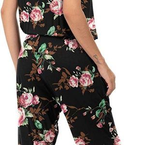 Features: Casual style, crewneck design, you can choose to wear off the shoulder, back keyhole, short sleeves, elastic waist, side pockets, ankle length, beam feet, solid color, printing, full of fashion atmosphere.