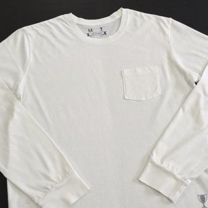 Double A Solid Long Sleeve Crew Neck Fine Cotton Top Shirt White Medium NWOT