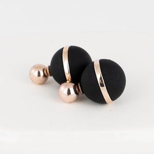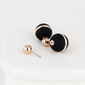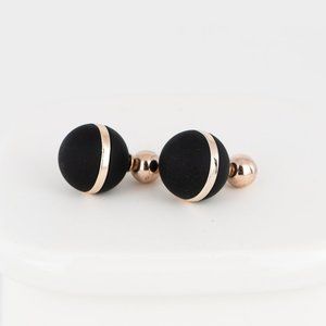 Double Ball Earrings Black Rose Gold Toned Large Chic Push Back Reversable Stud