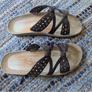 Double Bow Brown Sandals Slides Slip On 9 Flats Cottagecore Festival Girlhoodcor