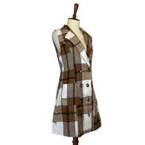 Double Breasted Brown Plaid Vest Button Down Mini Dress