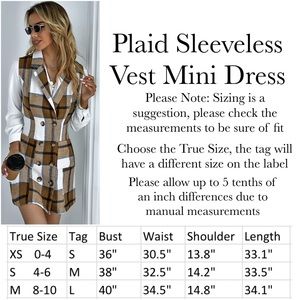 Double Breasted Brown Plaid Sleeveless Vest Button Down Mini Dress