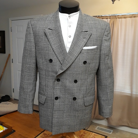 Size 42 Short Wool Salt and Pepper Plaid Sports Coat