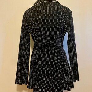 Black with white polka dots with white piping, Pockets