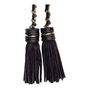 Double Brown Suede Leather & Gold Chain TASSELS for Handbag Purse Luggage FOB