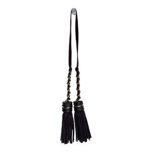This Suede Leather and Gold Metal Chain Double Tassel Fob Looks Great On Any Handbag, or Tote Bag. Makes A fun luggage Tag Identifier For Larger Luggage