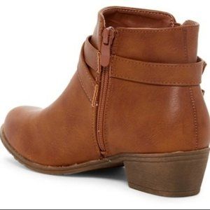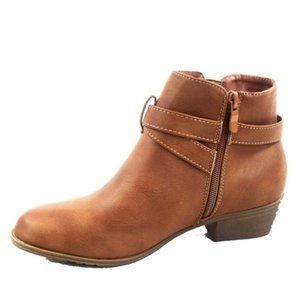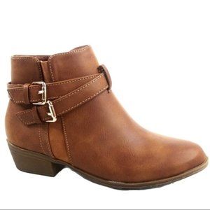 TOP Moda Chase-1 Women's Almond Toe Double Buckle Strap Stacked Low Heel Faux Leather Zipper Closure Ankle Bootie