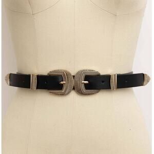 Double the buckles, double the style! Our Double Buckle Vegan Leather Western Style Belt is a statement piece that transforms any outfit. It's a durable and stylish choice. With a length of 40" and adjustable fit from XS to L (waist 24"-34"), it caters to a wide range of sizes.