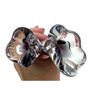 Double Bud Handblown Art Glass Vase Stretch Burgundy Blue White w/ Base 8.75"