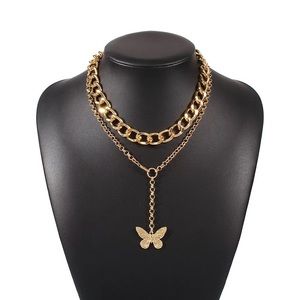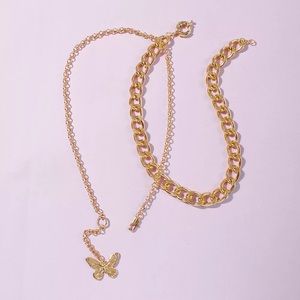Double Chain Gold Butterfly Necklace Set