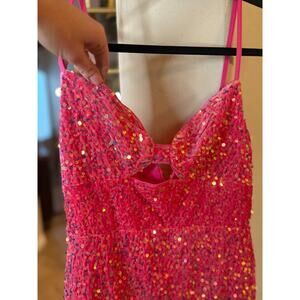 Double Crazy Pink Sequin Crystal Beaded Hem Mini Dress Size S 2-6