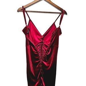 Double Crazy Velvet Spaghetti Strap Ruched Bodycon Dress Sz M Valentines Day Christmas