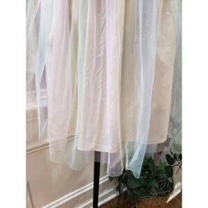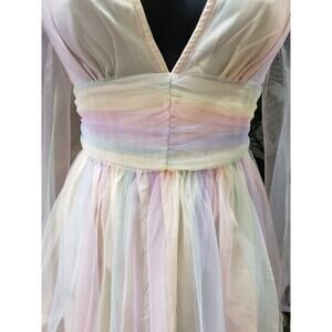 Double Crazy Women Multi Rainbow Tulle Ruffle Mesh Deep V Neck Mini Dress Size S