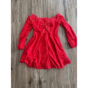 Double Crazy Women's off the shoulder Lace up Long Sleeve Red Dress Size Large