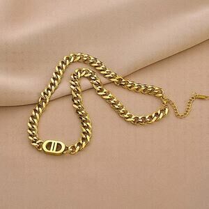 Stainless steel gold plated double d chain link Cuban necklace bracelet set